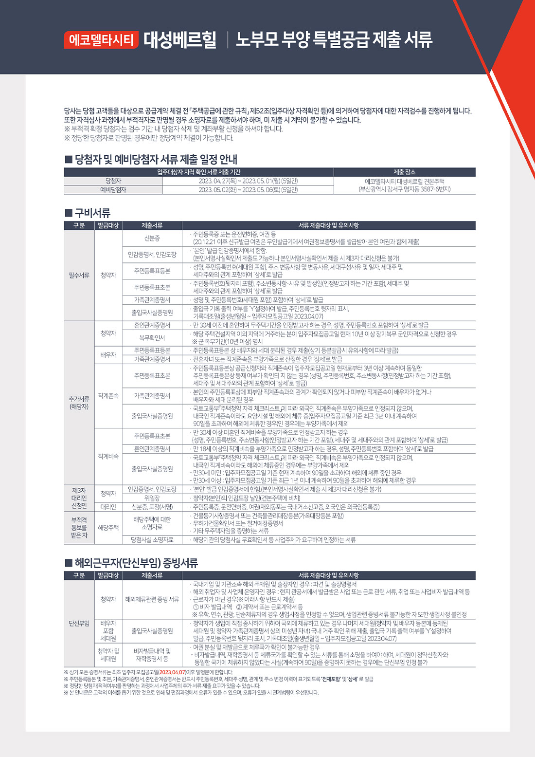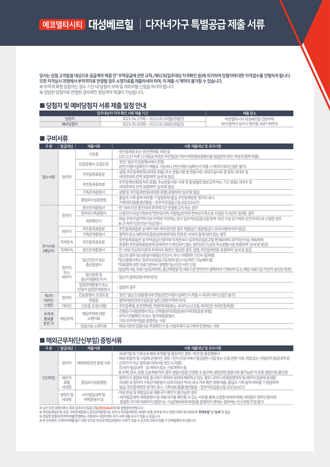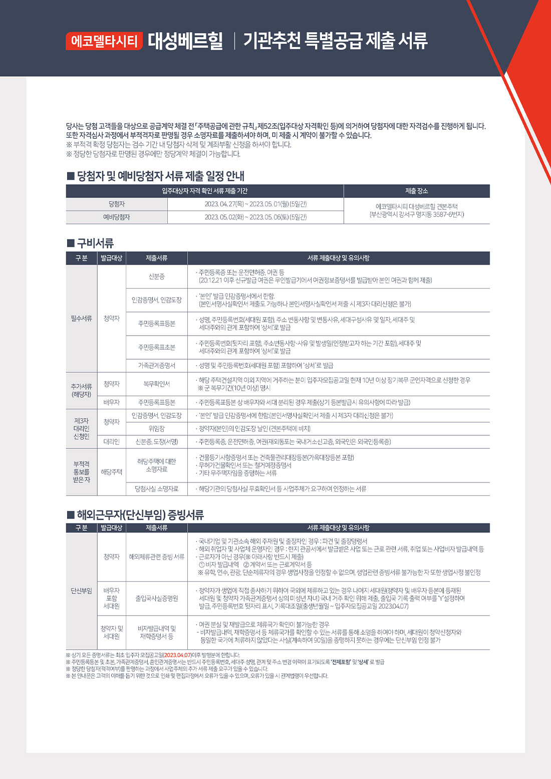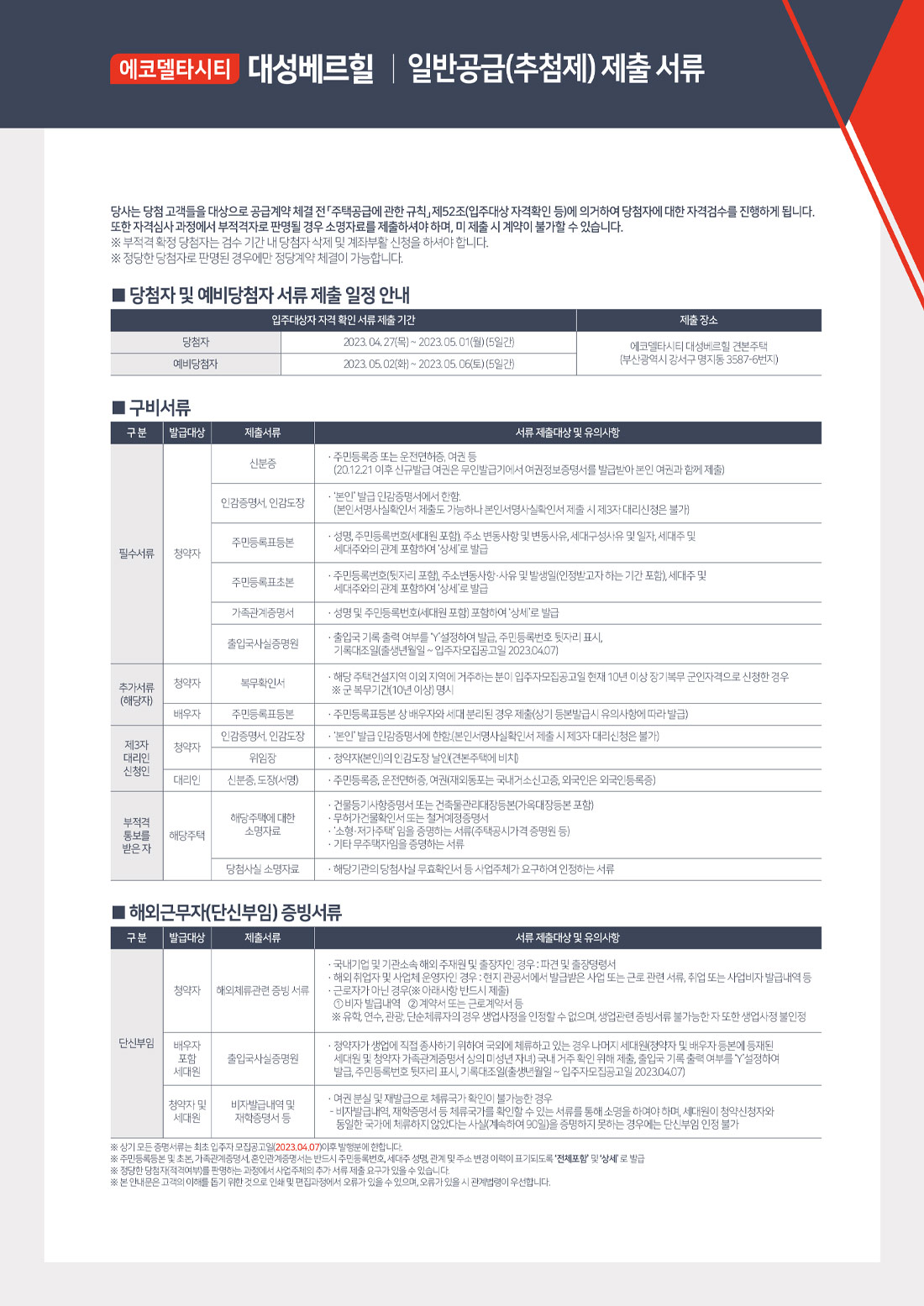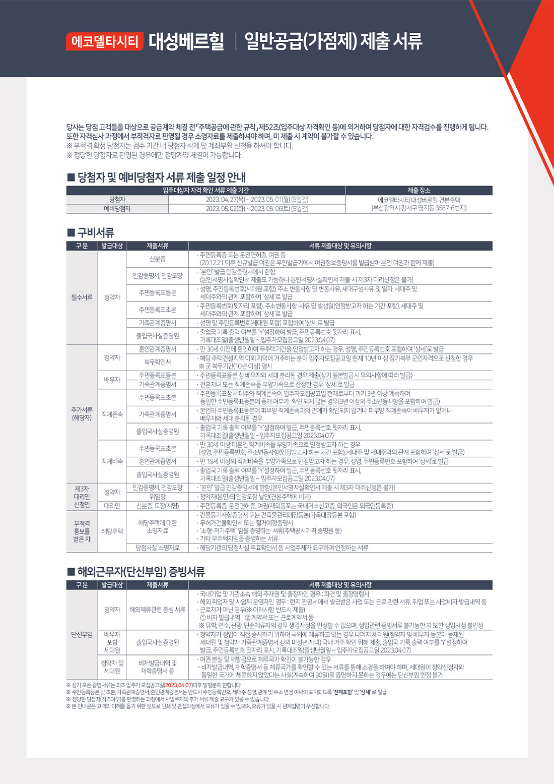 당첨자 서류안내