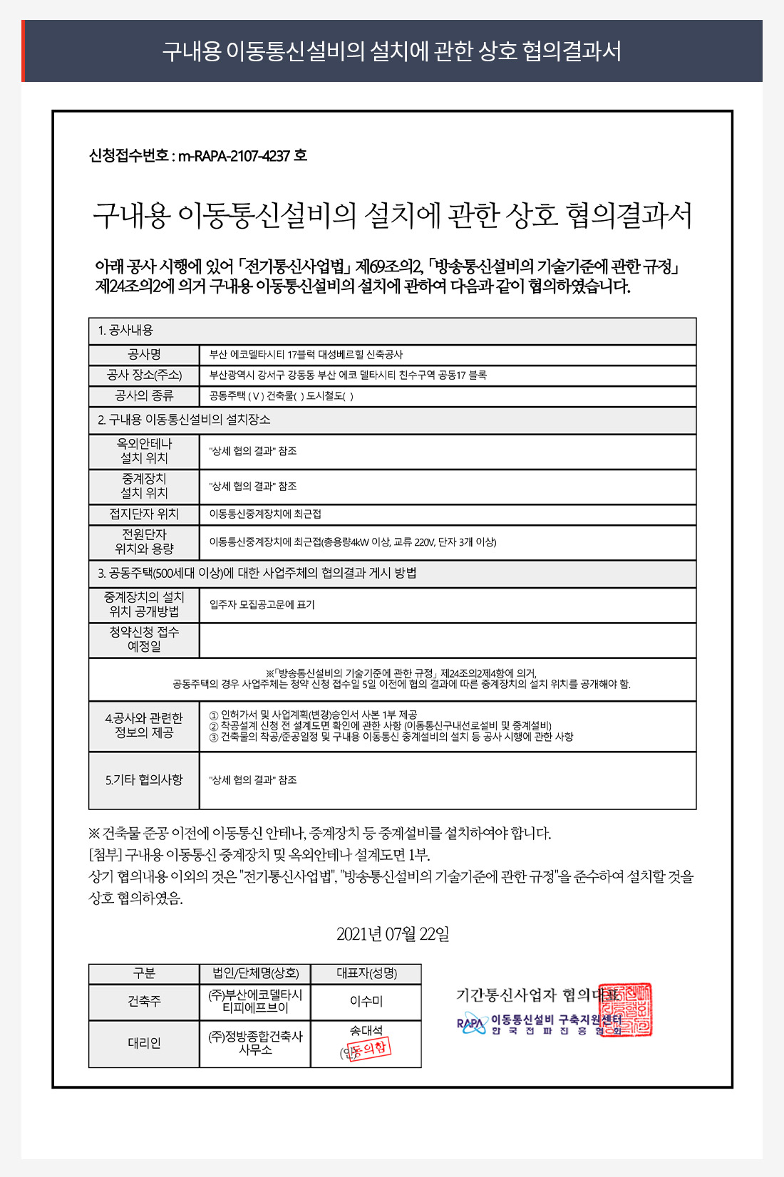 구내이동통신 협의결과서